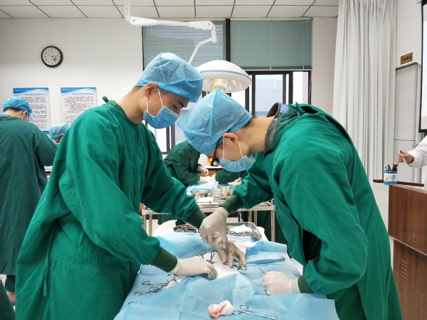 模擬手術(shù)室環(huán)境布局,著力于培養(yǎng)和提高學(xué)生的外科無菌意識,學(xué)習(xí)外科手術(shù)相關(guān)操作,鍛煉臨床外科思維。實驗室內(nèi)配有3D虛 擬解剖臺、腹腔鏡手術(shù)模擬系統(tǒng)等先進(jìn)設(shè)備供學(xué)生使用,幫助學(xué)生正確理解和運用現(xiàn)代外科學(xué)的技術(shù)和方法。