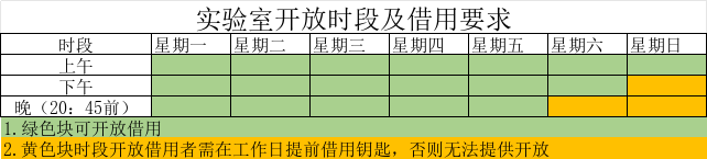 4. 使用實驗室時,請?zhí)崆暗娇萍紙@A座301領(lǐng)取鑰匙,使用結(jié)束后,請檢查實驗室門窗并保持實驗室整潔。若借用時間為周末,請在周五工作時間內(nèi)提前借用鑰匙。